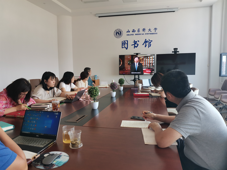 图书馆直属党支部理论学习中心组集体收看2023年高校党组织示范微党课