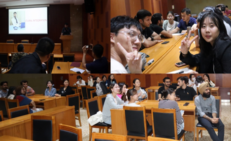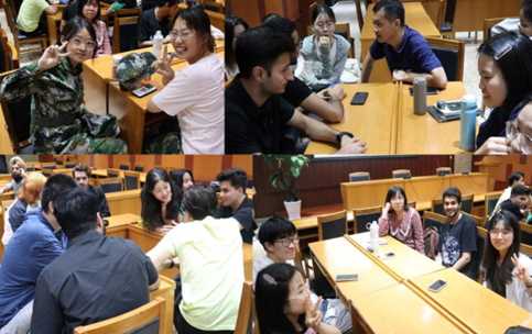 活动开始时,主持人宋贻睿和曹艺馨用中英双语引出了本次活动的主题。随后在分享环节,贺强老师向在场的各位外国友人展示了中国文化一角——中国地理。他巧妙地运用具有辨识力的人民币,来给外国友人们上了一堂印象深刻的中国地理课。随后,留学生郝若楠向我们介绍了他对文化融合的个人见解,并展示了巴基斯坦的文化地图。自由交流环节,中外学生深入探讨了许多不同国家的特色文化,彼此交换看法,交流感受。