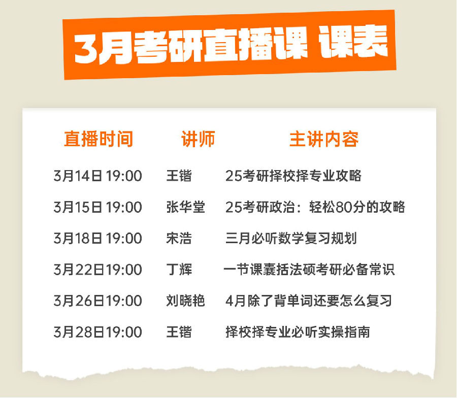 3月考研直播课预告丨考研备考攻略第一步!