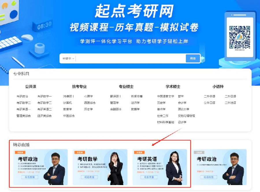 3、直播课回放 直播课结束后,可登录起点考研网观看回放视频 (注:注册登录后才可观看视频)