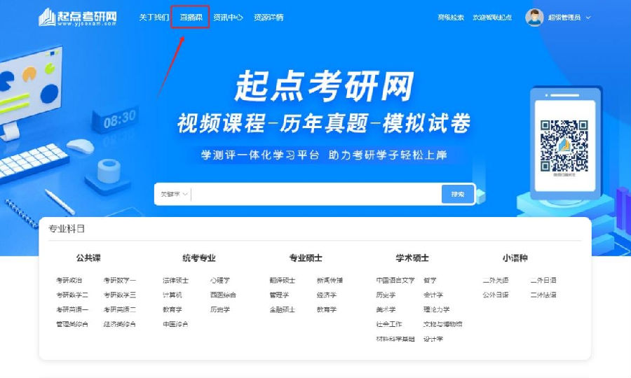 ①浏览器输入www.yjsexam.com进入首页 ③进入直播课