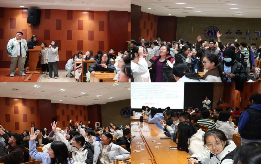 沙龙尾声,活动将主体转向在场的师生,报告厅内呈现出一片其乐融融的文化交流盛况。中外同学在此次双语文化沙龙活动中积极展现自我,锻炼了口语以及表达自我的能力,在一次次欢乐的交谈与活动中,感悟了“学海无涯‘乐’作舟“这句话的真谛。 本期双语文化沙龙活动以期末放松为目的,带观众切实体会到“学海无涯‘乐’作舟”的欢乐,让传统枯燥无味的学习过程变得更加轻松,更加令人愉快,也让来自世界各地的同学感受到学习融入游戏中的愉悦。 文/康蕾、贺强 图/贺强、康蕾 |