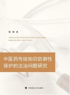 书名:中医药传统知识防御性保护的法律问题研究 出版社:中国政法大学出版社 ISBN:978-7-5764-0800-3 出版时间:2022 作者:陈默 简介:本书重点介绍中医药传统知识防御性保护法治问题的基本范畴;中医药传统知识防御性保护的法治路径;中医药传统知识防御性保护法治中的制度运用;中医药传统知识防御性保护法治中的制度构建;中医药传统知识防御性保护法治目标的实现。